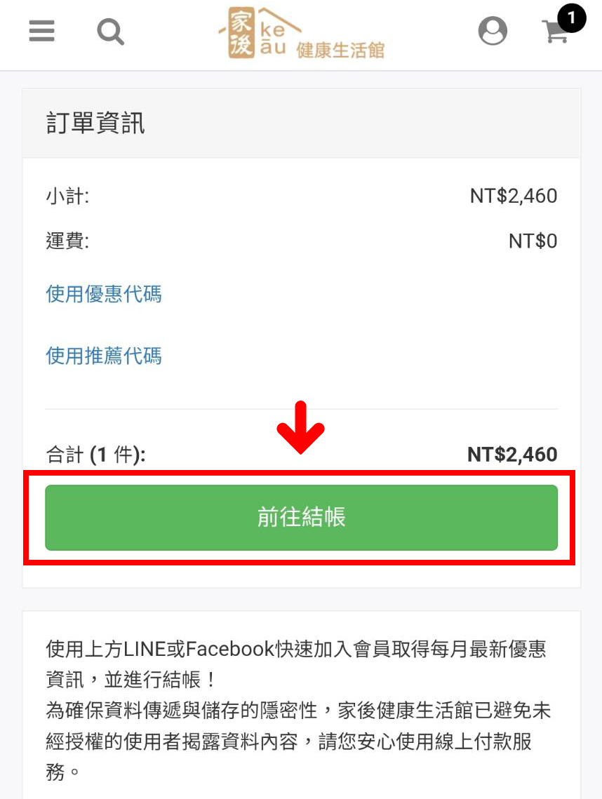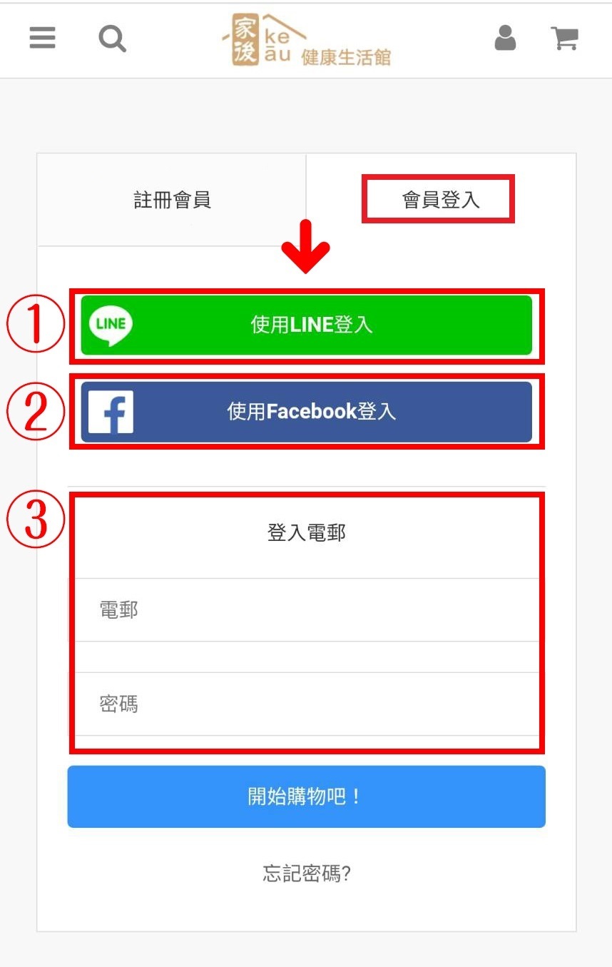 二、選擇其中一種方式登入會員後,即可選購商品。