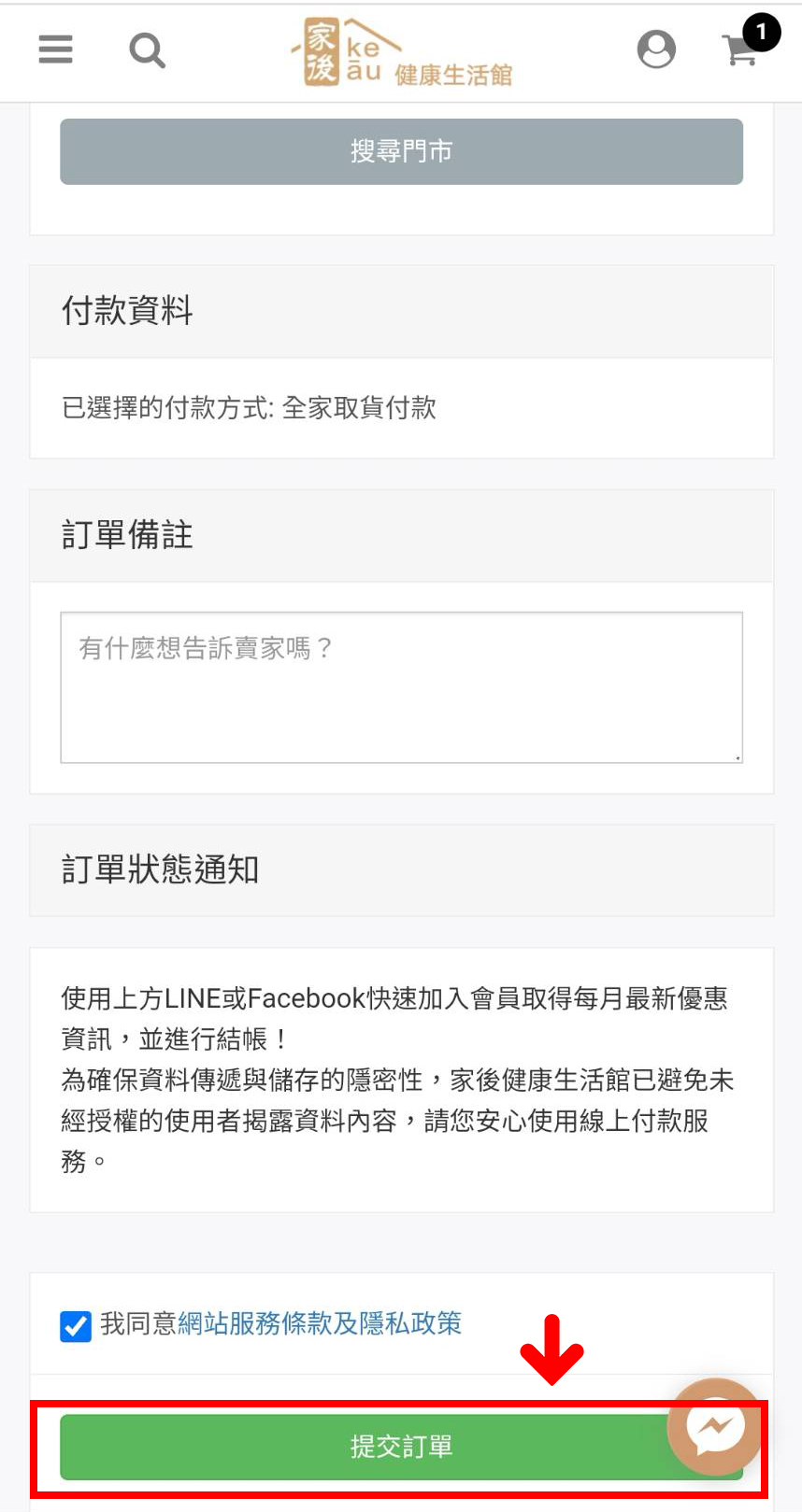 八、若有特殊需求可打在訂單備註,最後點選提交訂單即可。