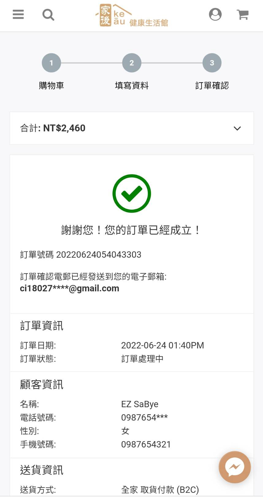 九、看到此畫面即代表訂單成立,請隨時注意簡訊與EMAIL通知。