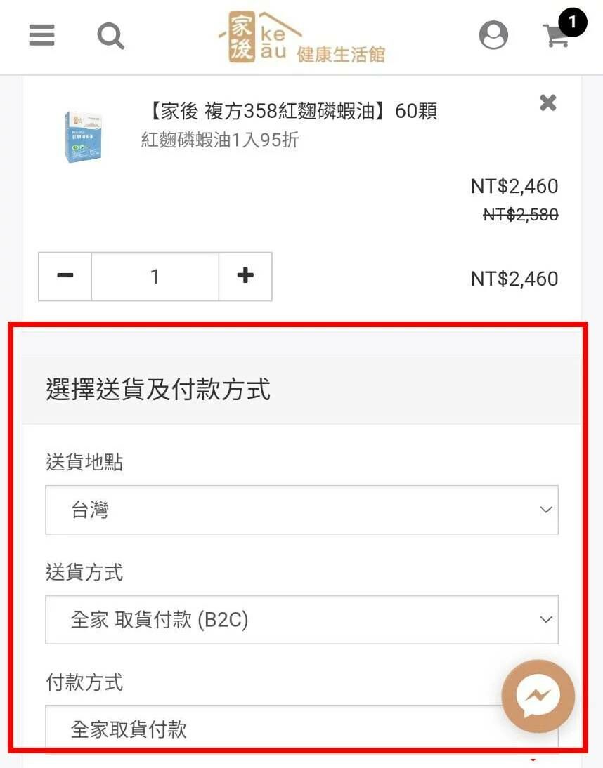 五、進入結帳頁面,選擇【送貨方式】與【付款方式】。