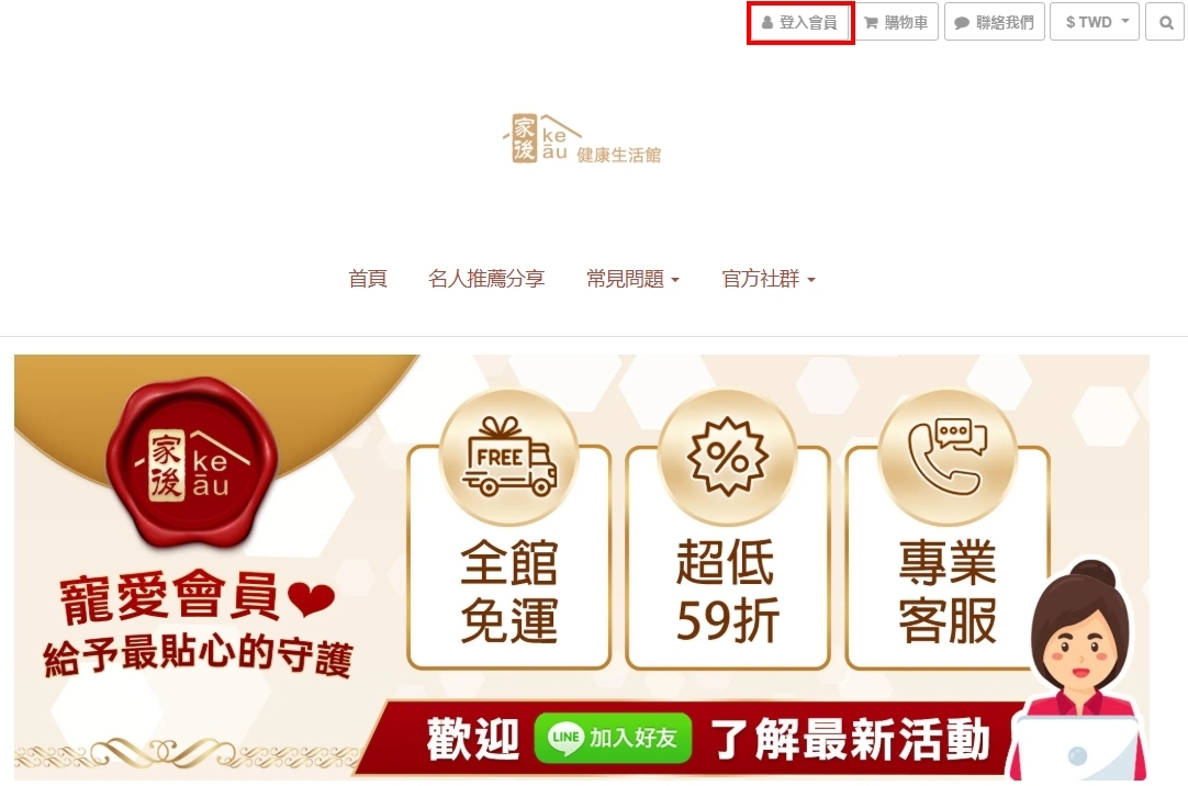 一、點擊官網右上角人形圖案【登入會員】。