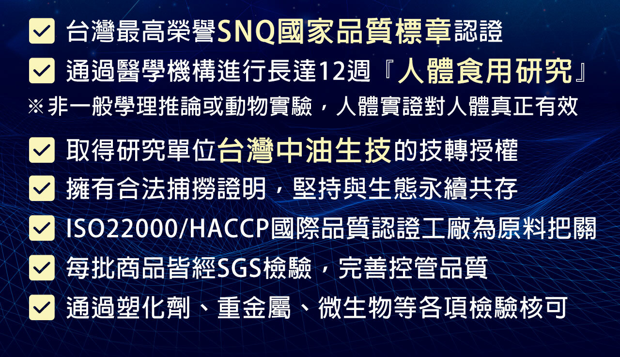 | 注意事項 | 請徵詢醫師、藥師或營養師有關食用本品之意見;均衡的飲食及適當的運動為身體健康之基礎。本產品非藥品,供保健用,罹病者仍需就醫。 請依建議攝取量食用,勿過量。 |